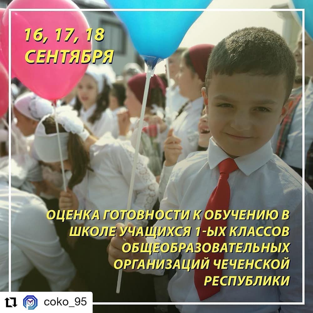Уважаемые коллеги! 16, 17, 18 сентября в общеобразовательных организация Чеченской Республики пройдет традиционное мониторинговое исследование «Оценка готовности к обучению в школе учащихся 1-ых классов общеобразовательных организаций Чеченской Республики». Данное исследование проводится с целью получения данных о готовности первоклассников к обучению, позволяющих определить индивидуальные траектории развития учащихся и разработать рекомендации для учителей по поддержке детей в процессе их адаптации в начале обучения в школе.Более подробная информация размещена на сайте ЦОКО