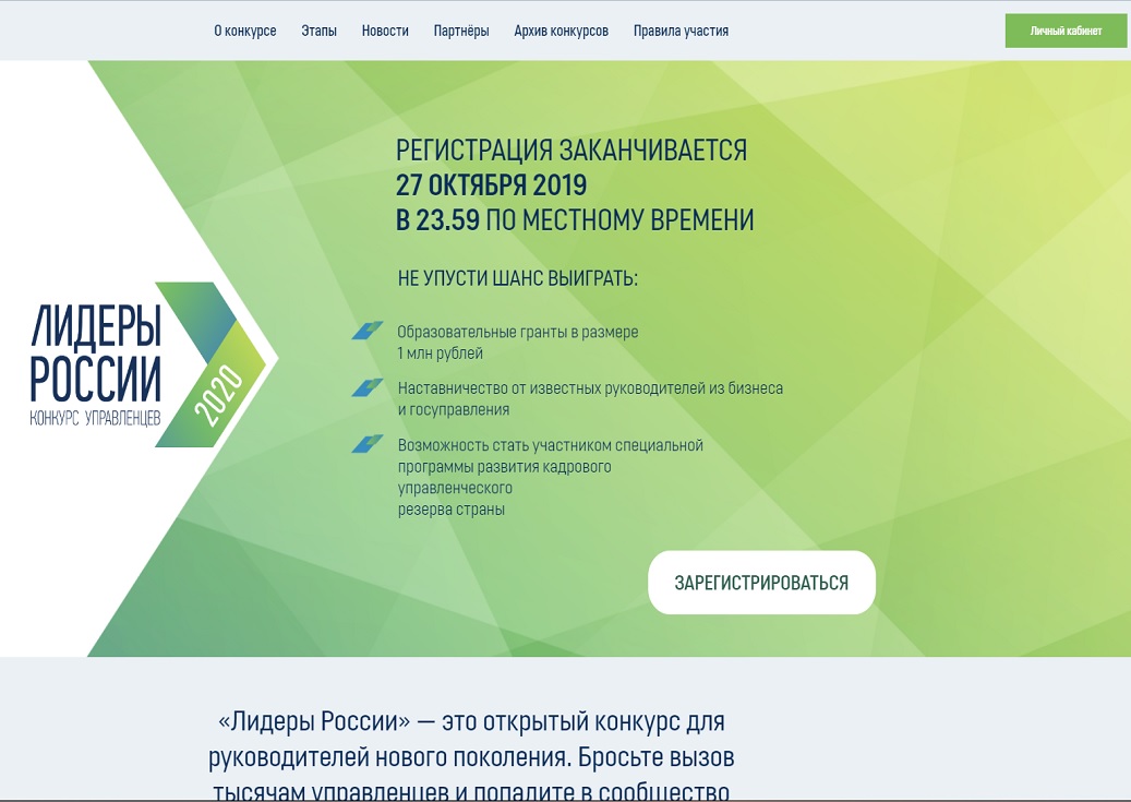 22.10.2019В начале октября текущего года президент РФ Владимир Путин поддержал старт третьего по счету конкурса управленцев «Лидеры России» 2019-2020 годов. До конца приема заявок осталось чуть меньше недели.