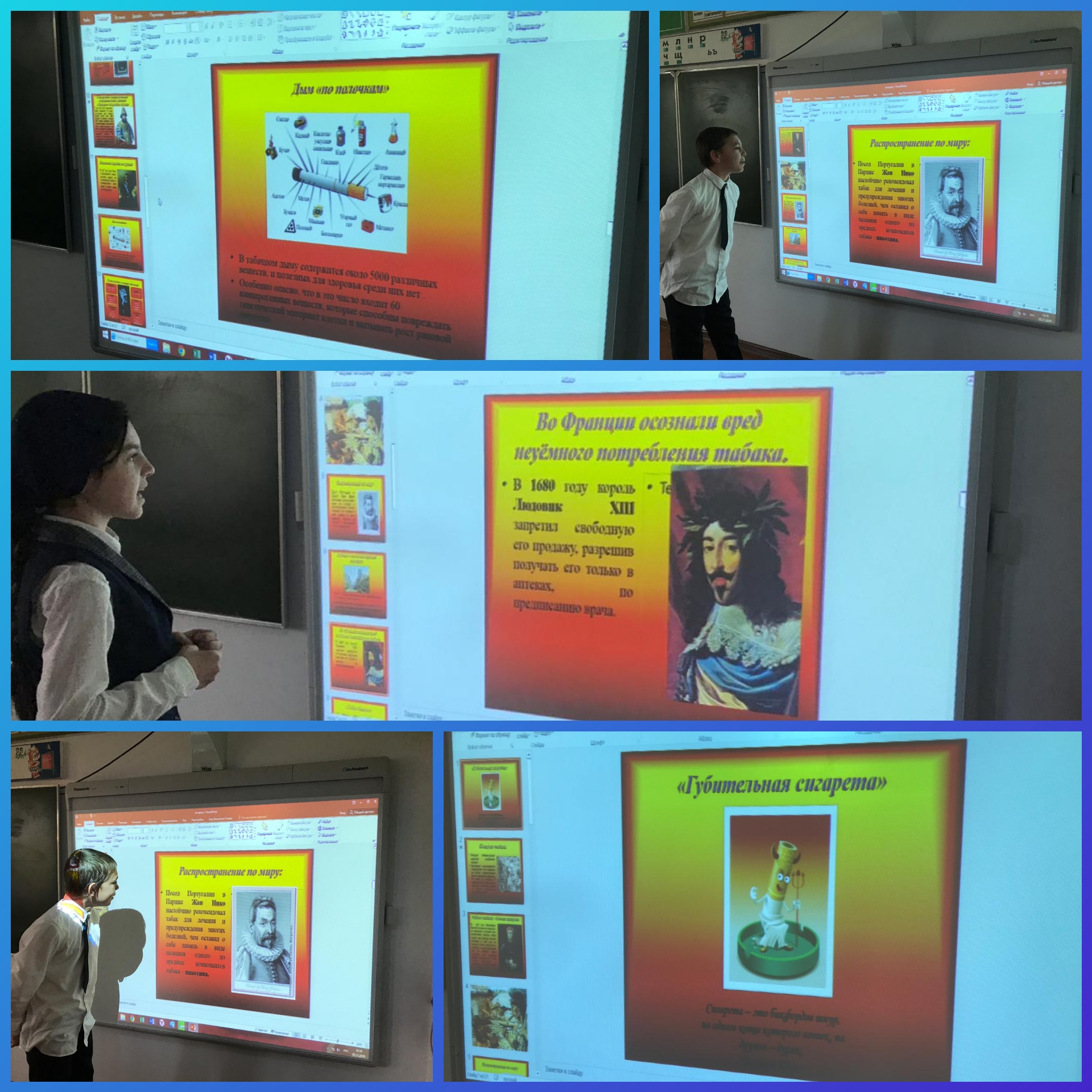 В нашей школе в 5 - 9 классах прошли классные часы на тему" Губительная сигарета". Цель: формирование у учащихся негативного отношения к курению, повышение эмоциональной и мотивационной зрелости учащихся.