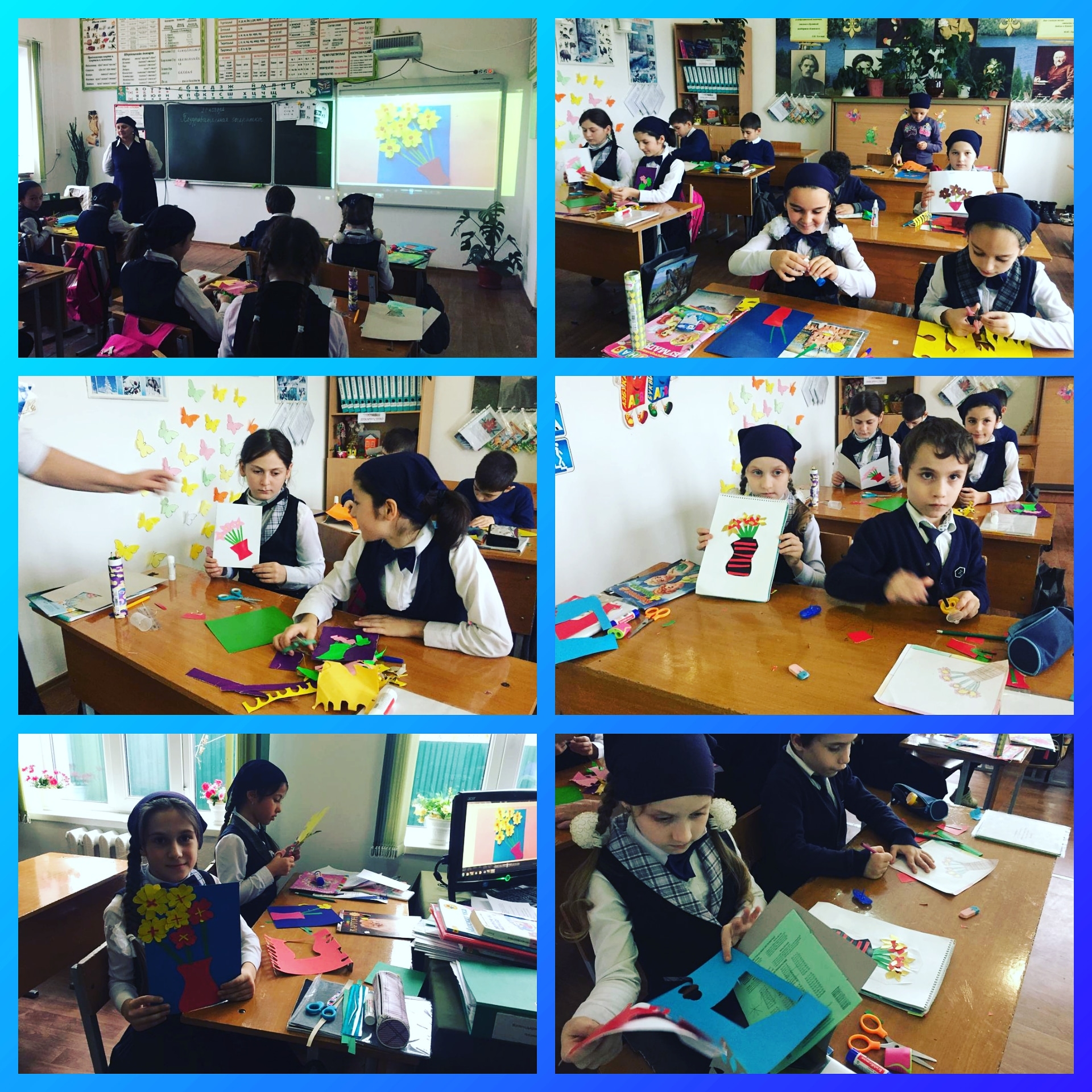 Начальная школа активно готовится к грядущему празднику. Урок технологии в 3 классе