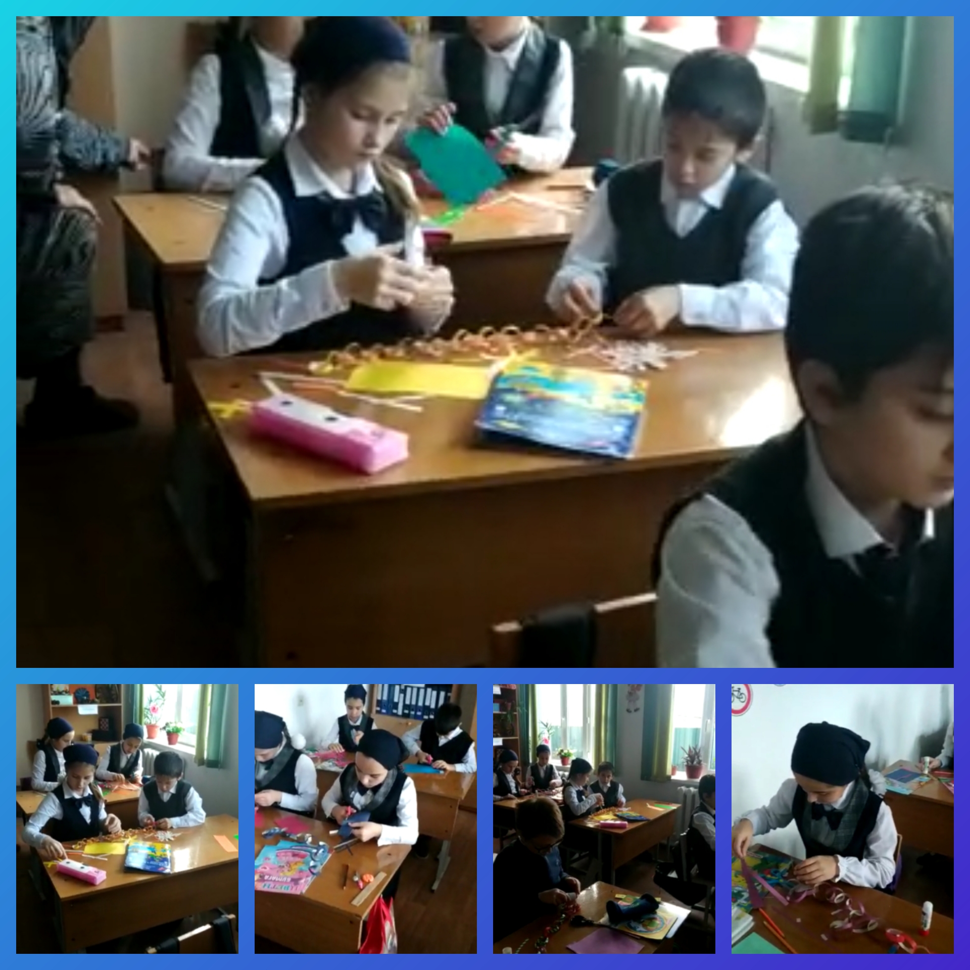 Урок технологии в 4 классе тема:"Новогодняя гирлянда из цветной бумаги"👩‍🎓 учитель Хаджиева А.С-М.