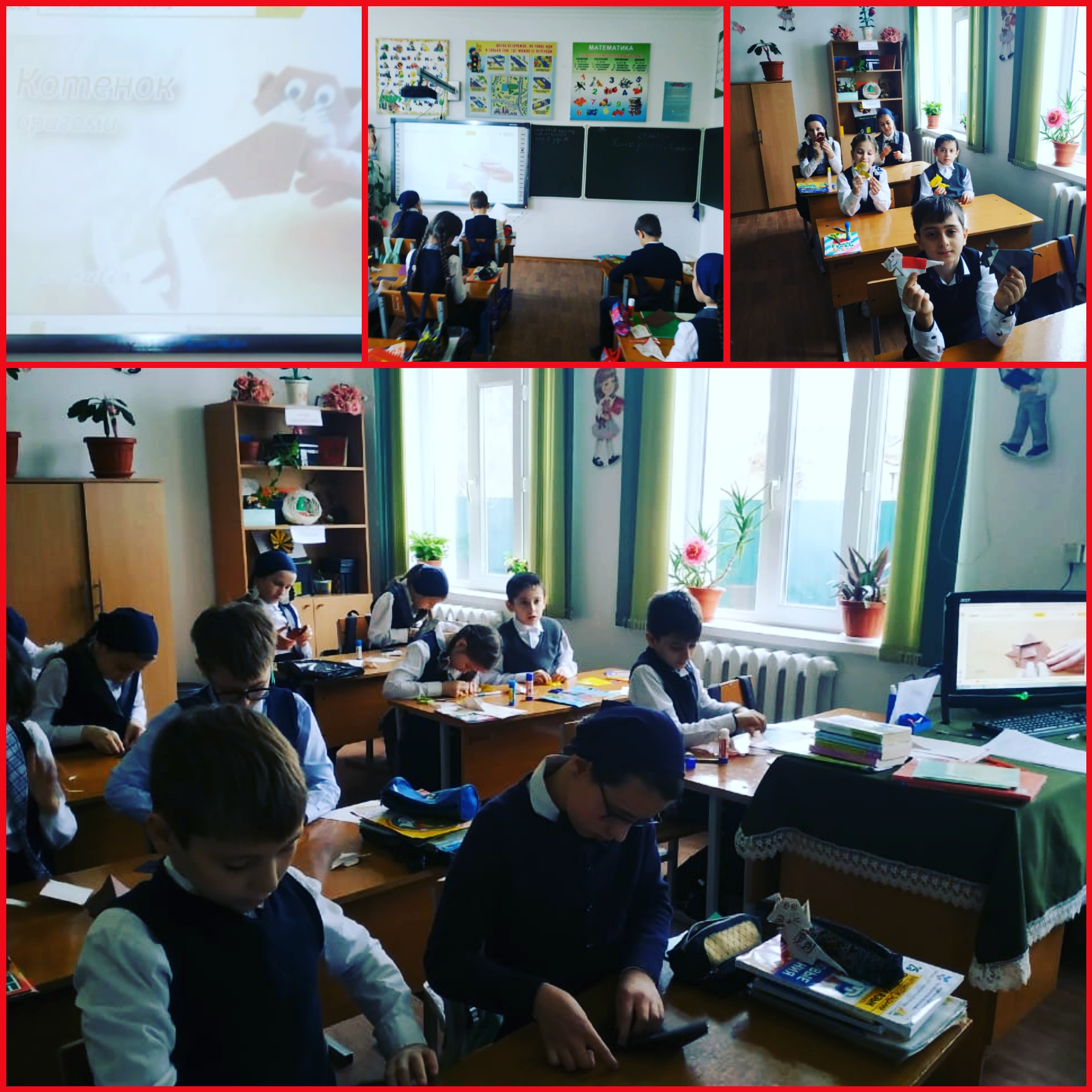 Урок технологии в 4 классе тема:"Оригами котенок" учитель Хаджиева А.С-М.