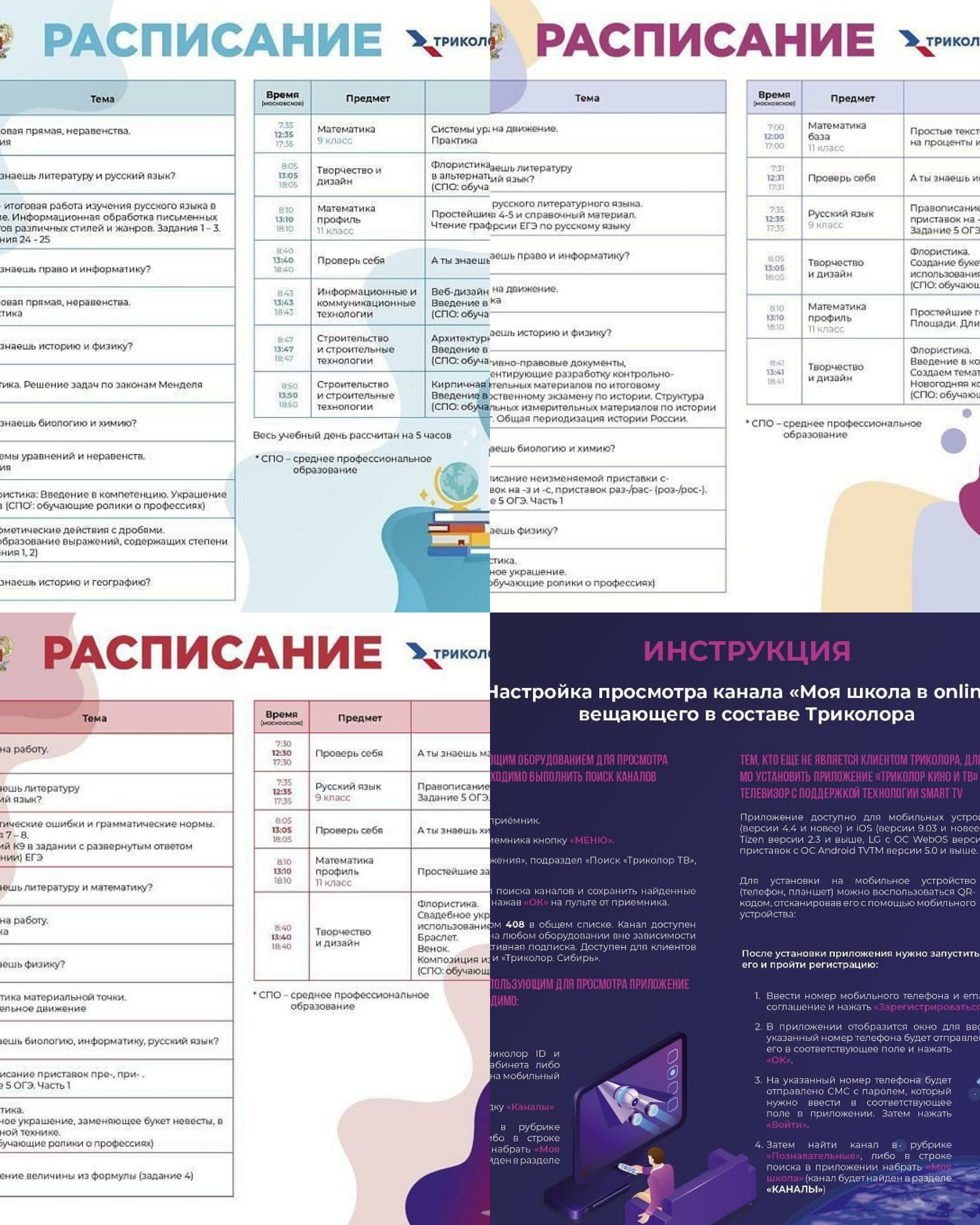 Занятия по общеобразовательным предметам для старшеклассников начнутся завтра, 22 апреля, на телеканале «Моя школа» мультиплатформенного оператора цифровой среды «Триколор». Подробная инструкция по подключению телеканала изображена на картинке!
