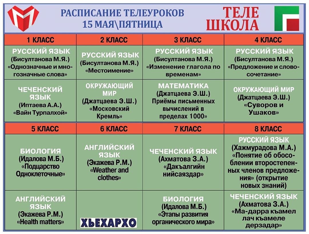 Расписание телеуроков для школьников на 15 мая.