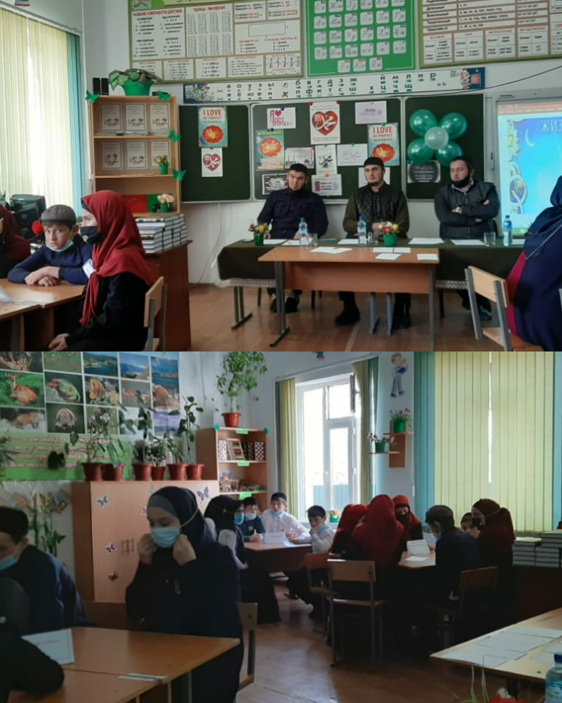 В целях обогащения духовного мира учащихся,популяризации знаний о последнем пророке Аллах1а, педагогом-организатором по ДНВ Саламовым А.Л. был организован и проведён конкурс "Жизнь Пророка Мухаммада (с.а.с.)."На мероприятие был приглашен хафиз Цагалов Абдуллах1.Победители и все участники конкурса были награждены грамотами, Коранами и ковриками для совершения Намаза,что является ценным подарком для мусульманина.