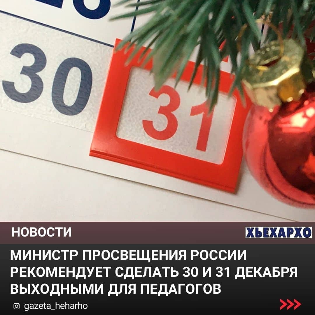 Министр просвещения России Сергей Кравцов рекомендует сделать 30 и 31 декабря нерабочими днями для педагогов в текущем году.