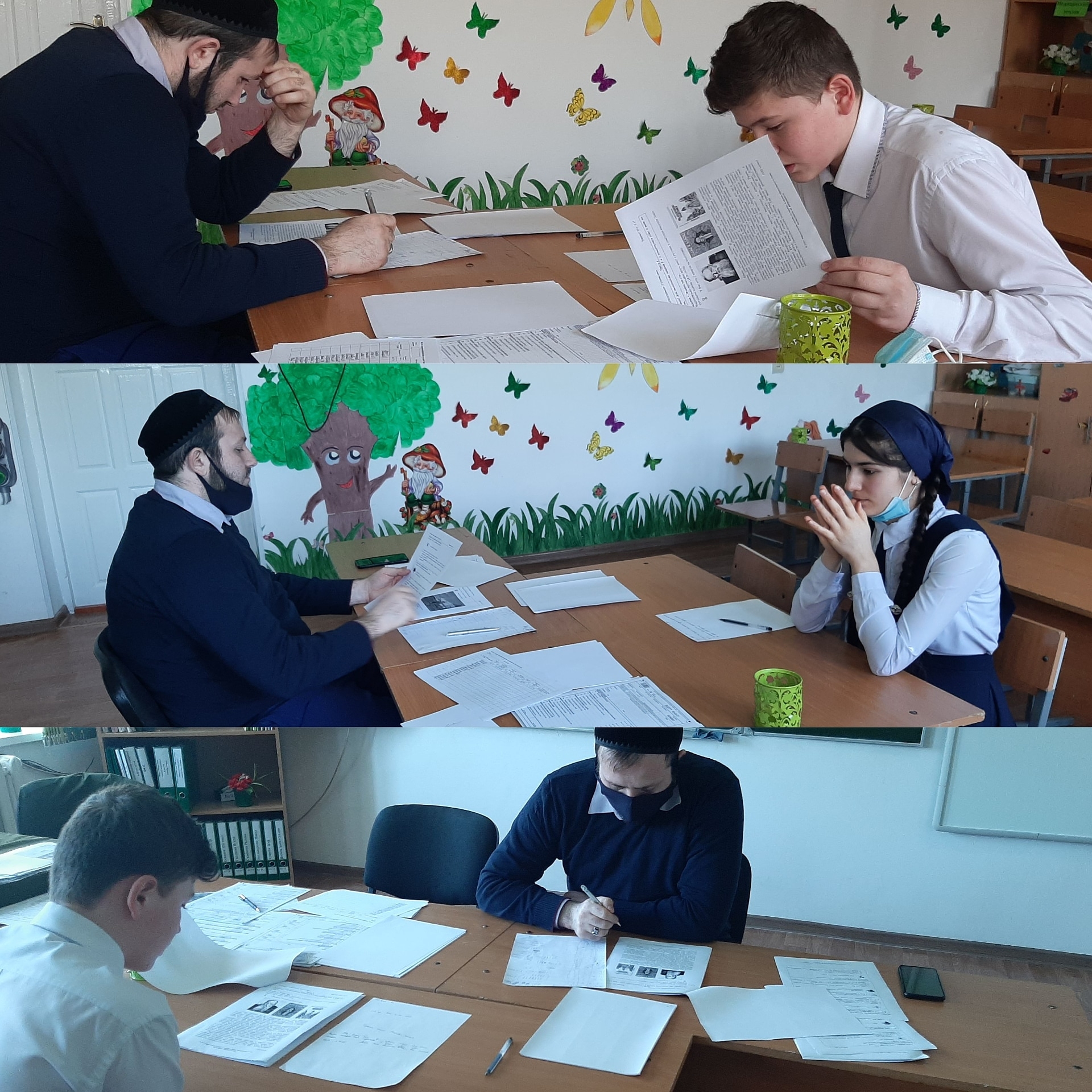 Учащиеся 9 класса проходят итоговое устное собеседование по Русскому языку в классе.
