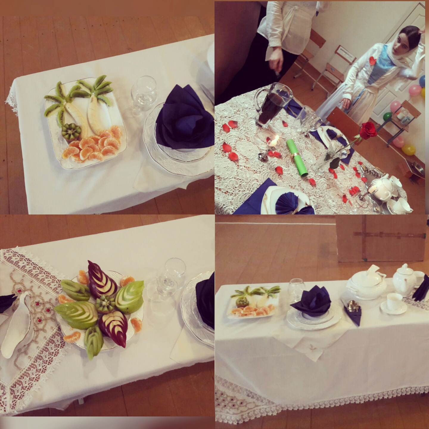 Украшение столов учащимися 8-9 классов