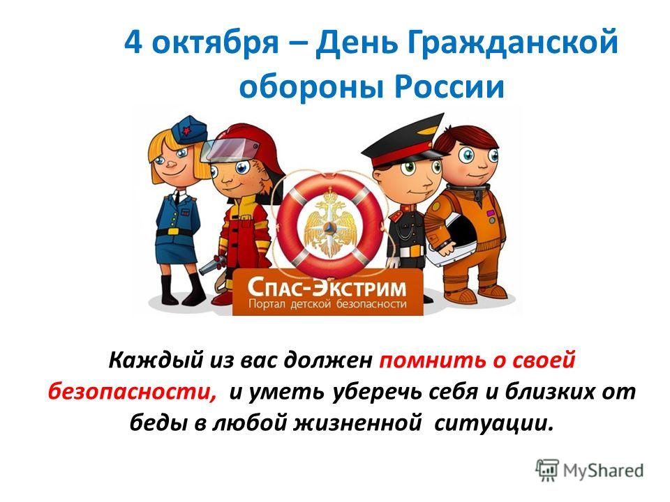 04.10.2017Гражданская оборона это одна из важнейших функций государства по обеспечению безопасности граждан и страны в целом. Создана она была 4 октября 1932 года и называлась общесоюзная система противопожарной обороны, а в 1961 году была переименована в гражданскую оборону. В настоящее время это отлаженная и эффективно работающая система, оказывающая экстренную помощь при возникновении форс-мажорных ситуаций не только в нашей стране, но и за рубежом. В ее состав входят противопожарная служба, войска гражданской обороны, авиация, поисково-спасательные подразделения, работающие в круглосуточном режиме реагирования на чрезвычайные происшествия. Учитывая большое значение МЧС в жизни, нашей страны 4 октября считается Днем гражданской обороны МЧС России.