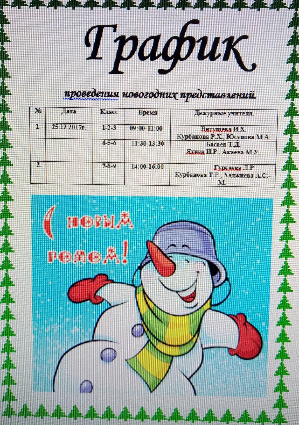 Уважаемые родители! Ознакомьтесь пожалуйста с графиком проведения новогодних ёлок. Просьба не опаздывать.