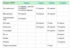 График проведения ВПР в 4,5,6 классах в 2018 году.