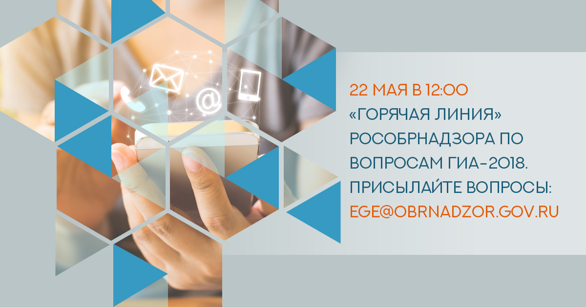 22 мая Глава Рособрнадзора в ходе "Горячей Линии! ответит на вопросы лб образовании ГИА в 2018 году