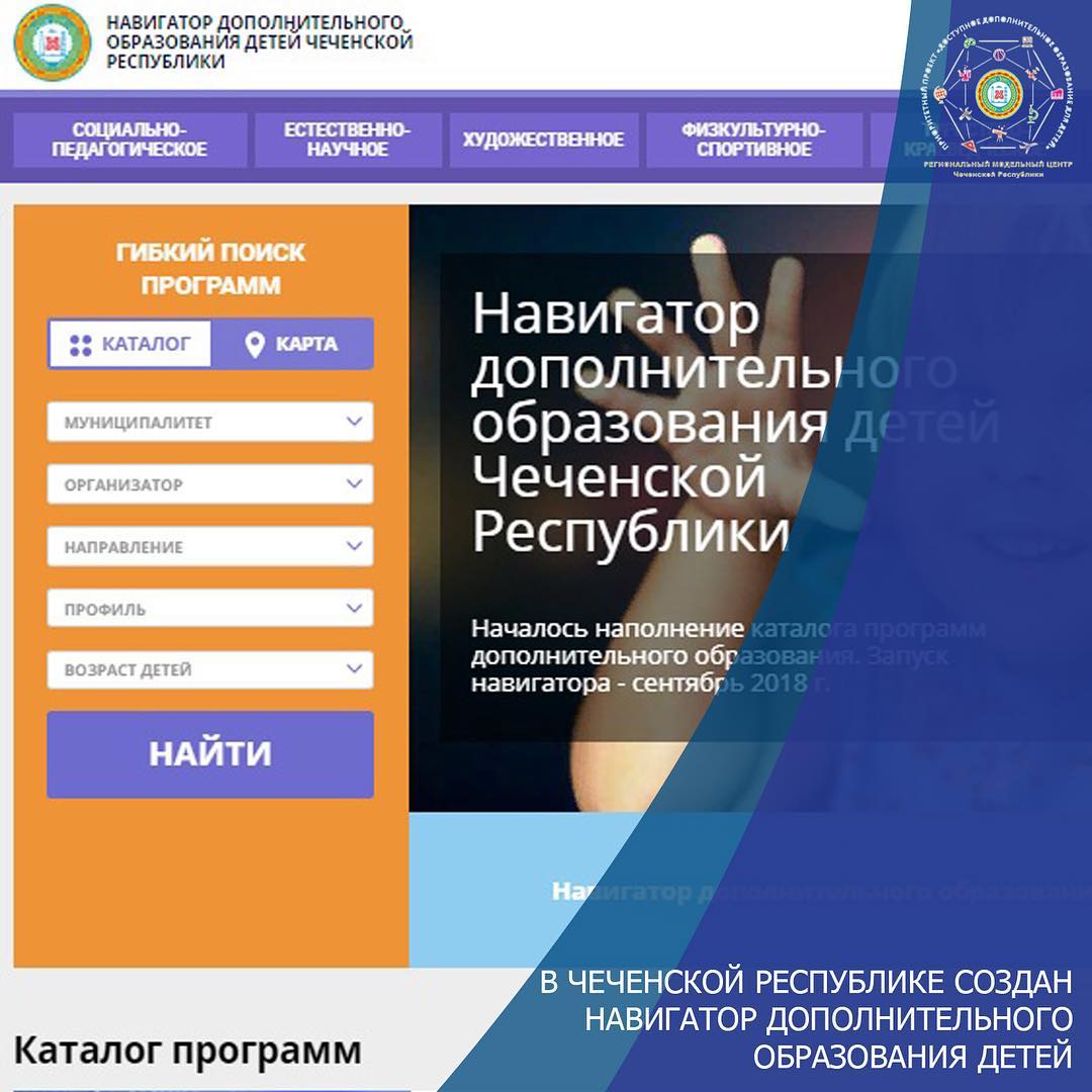 30.05.2018В Чеченской Республике создан Навигатор по программам дополнительного образования. "www.rmc-chr.ru" - это информационный портал, который будет содержать исчерпывающую информацию по организациям и программам дополнительного образования детей региона. Интернет-портал разработан в рамках Приоритетного проекта "Доступное дополнительное образование для детей" с целью повышения доступности, открытости и качества дополнительного образования.