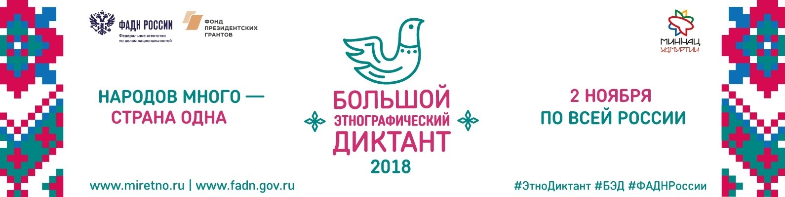 27.10.20182 ноября 2018 года на площадке МБОУ "ООШ с.Новый-Шарой" пройдет Всероссийская просветительская акция "Большой этнографический диктант". Текст диктанта включает в себя 30 вопросов: 20 федеральных и 10 региональных. Время выполнения 30 минут. Регистрация участников 9.00-9.40. Участие в диктанте 10.00-10.45.