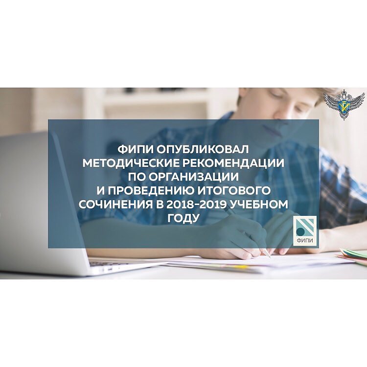 31.10.2018@rosobrnadzor Федеральный институт педагогических измерений (ФИПИ) опубликовал на своём сайте методические рекомендации по организации и проведению итогового сочинения (изложения) в 2018-2019 учебном году. На сайте ФИПИ можно ознакомиться с рекомендациями по организации и проведению итогового сочинения для региональных министерств образования и образовательных организаций, рекомендациями по подготовке к итоговому сочинению для участников, критериями оценивания сочинения и рекомендациями для экспертов, участвующих в проверки итогового сочинения.