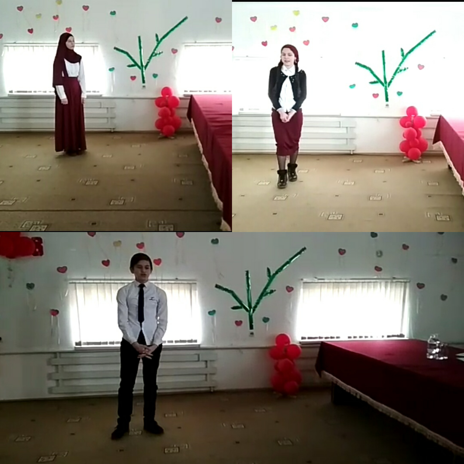 Участники муниципального этапа всероссийского конкурса "Живая классика": Хаджиев Магомед-Эмин,Лабазанова Разет и Исмаилова Ясина.