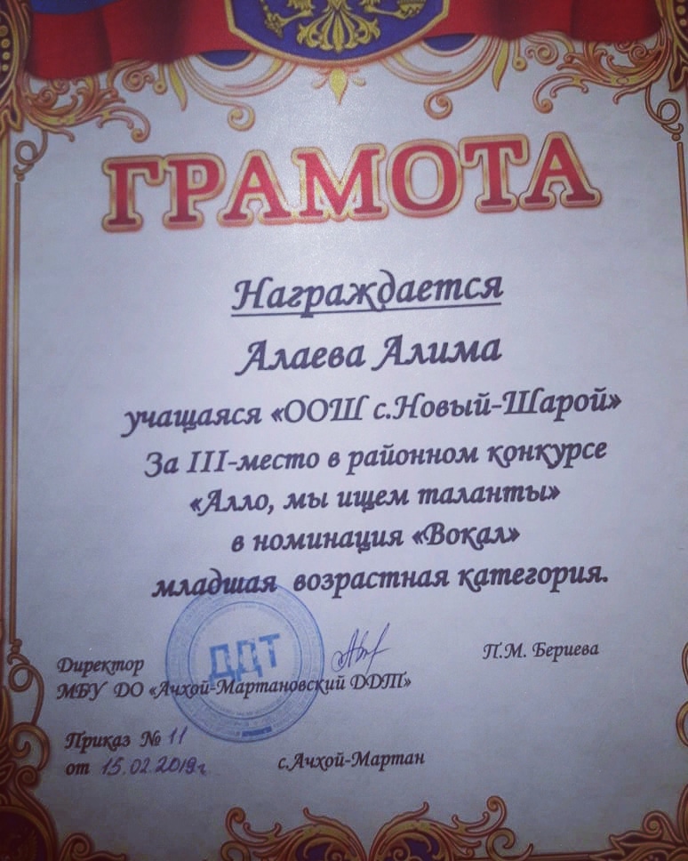Муниципальное бюджетное общеобразовательное учреждение "Начальная общеобразовательная школа с. Новый-Шарой" Ачхой-Мартановского муниципального района