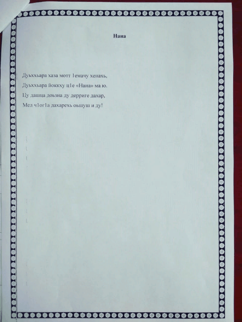 Нохчийн меттан Денна лерина сочиненийн къовсам ,,Нохчийн мотт сан дозалла "